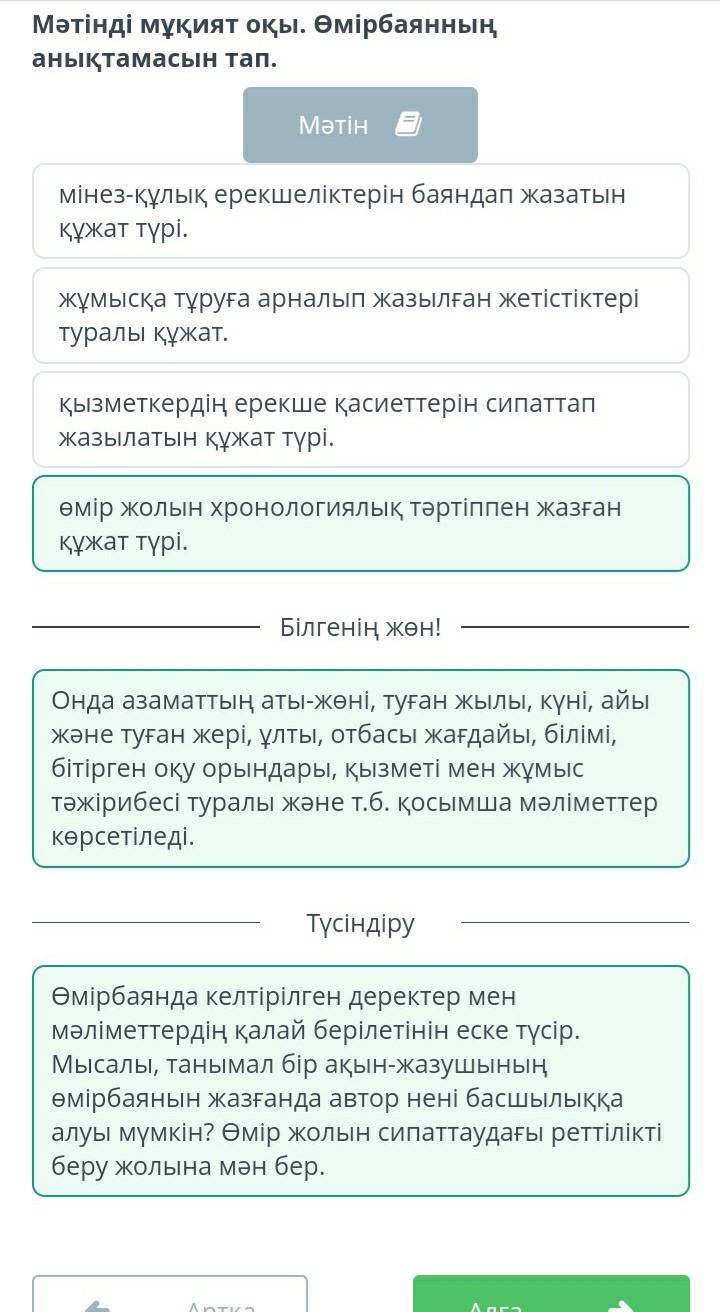 Мәтінді мұқият оқы. Өмірбаянның анықтамасын тап.