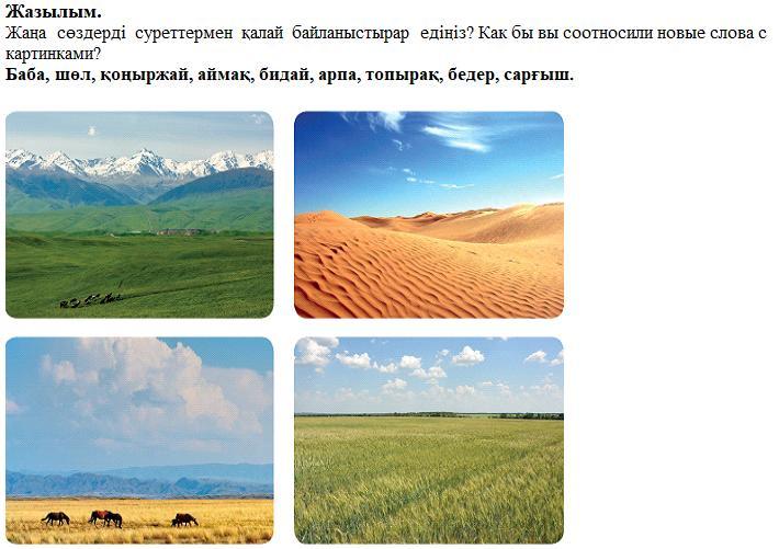 Жаңа сөздерді суреттермен қалай байланыстырар едіңіз? Как бы вы соотносили новые слова с картинками?