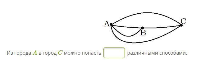 Отметь, сколькими различными способами можно попасть из города A в город C, если на данном рисунке схематически изображены варианты путей?