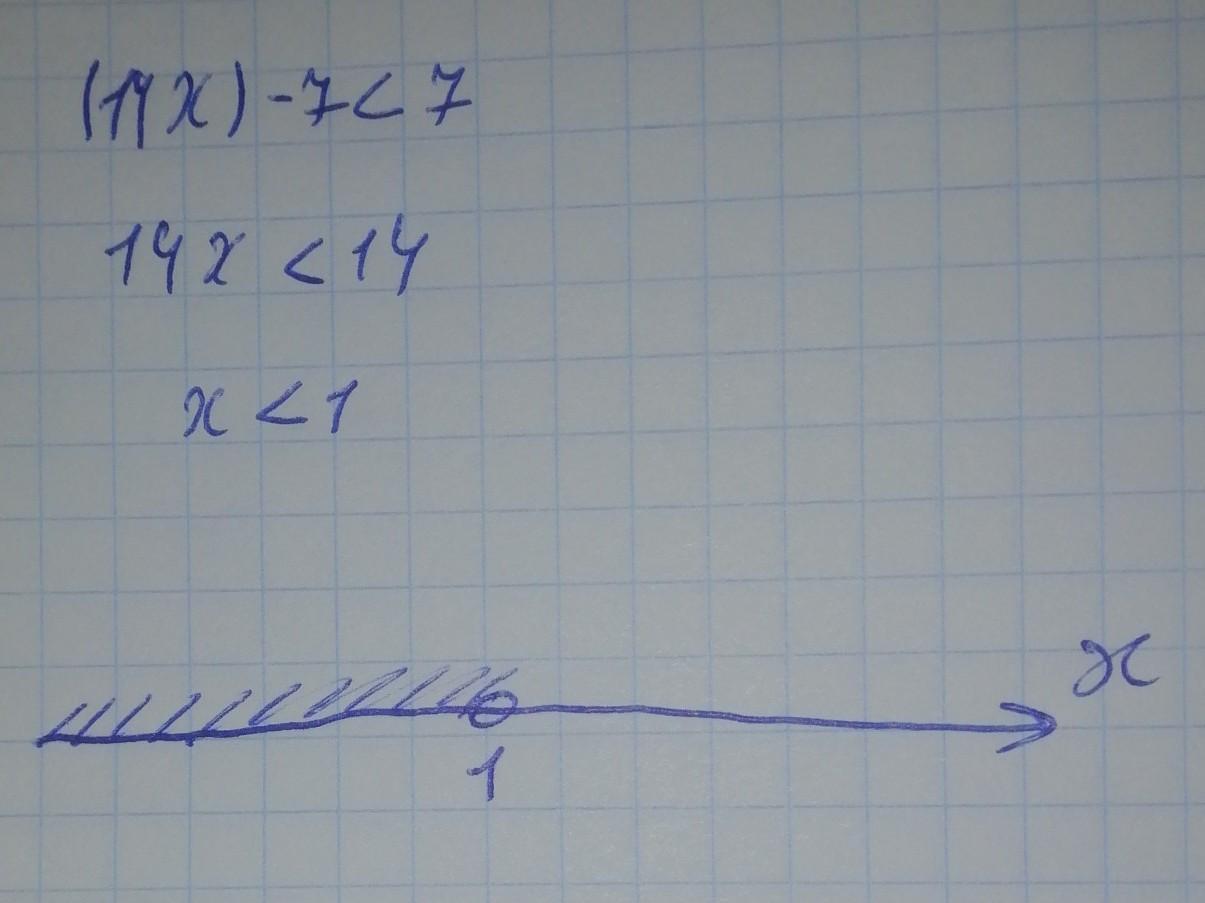 Переносишь минус семь(которая стоит слева от знака =), у тебя выходит 14х<14, и ты это все делишь на 14. Выходит х<1.