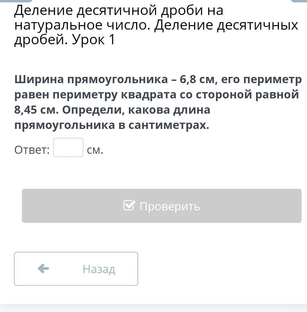 по условию периметр прямоугольника равен периметру квадрата со стороной 8,45, периметр - это сумма длин всех сторон, стороны у квадрата равны, значит