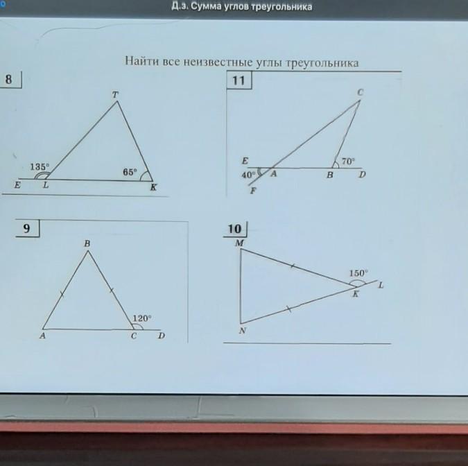 11) ∠A = 40° ∠B = 110° ∠C = 30°