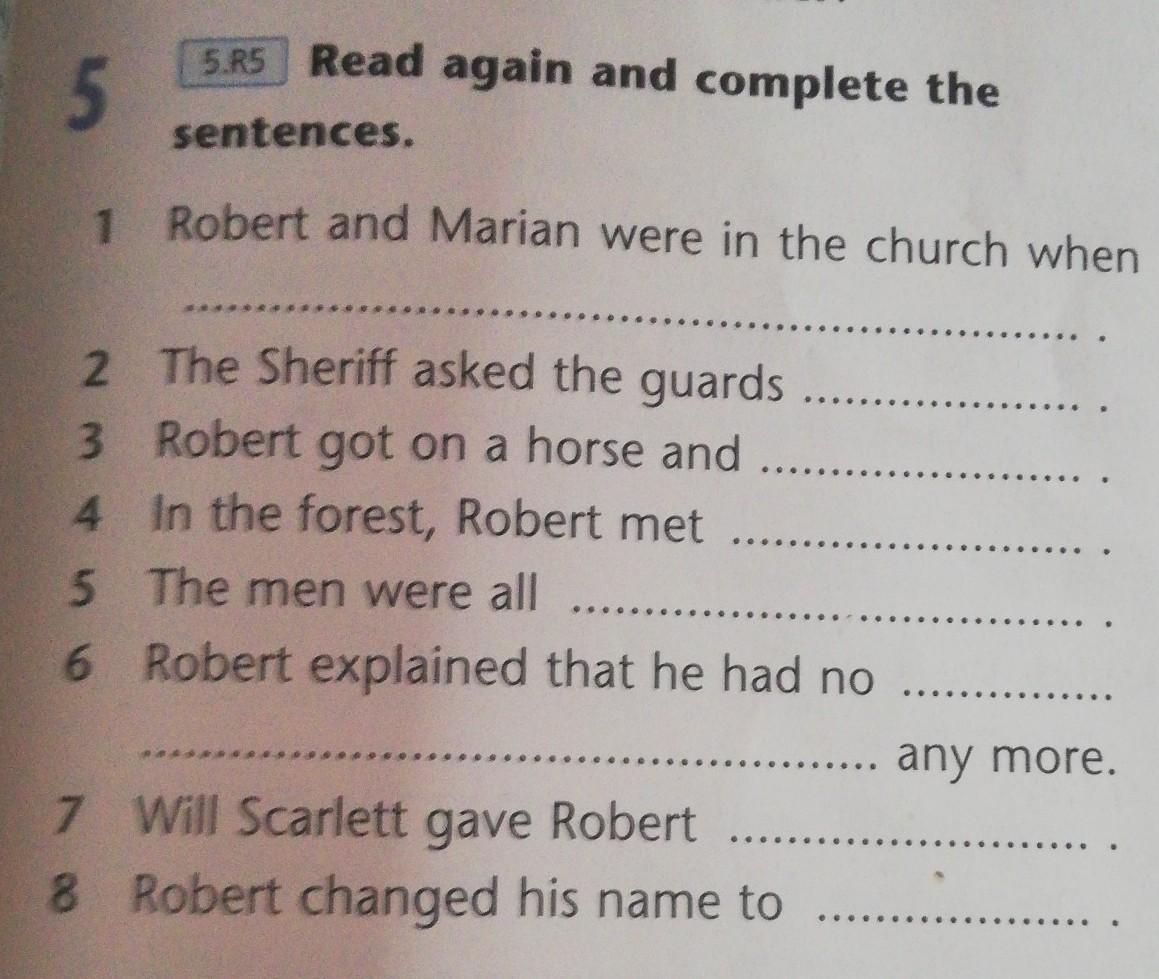 7. Will Scarlett gave Robert a bow and arrow and a green hood.