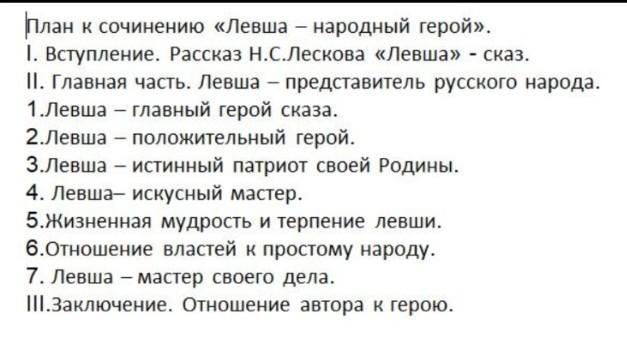 В рассказе Лескова «Левша» через главного героя представлен собирательный образ всего русского народа. Простой человек – необразованный, неопрятный, косой и с родимым пятном на щеке, но при этом невероятно талантливый.Он не знает законов физики и не имеет, каких бы то ни было, подходящих условий, но, несмотря на это, все равно создает шедевры. Даже имя его написано с маленькой буквы, чтобы показать, что это не какой-то конкретный человек, а весь народ, живущий в серости и нищете. Кроме того, автор указывает еще и на то, что в России имена многих гениальных людей незаслуженно забыты.