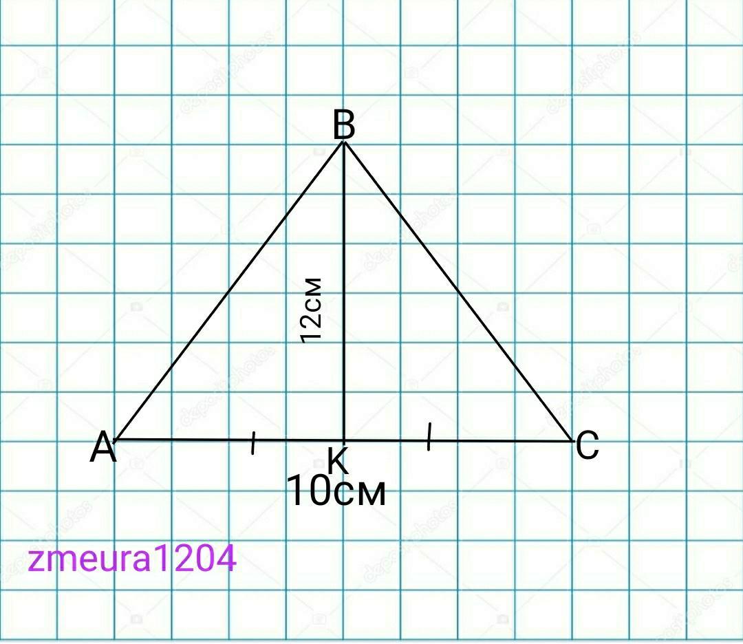 Найдите сторону равнобедренного треугольника, если его основание 10см, а высота 12см.