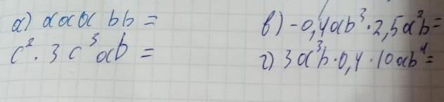 a) aaabb=a³b² b)-o,4ab³*2,5a²b=-1a³b^4