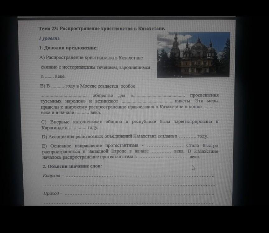 ..................................... общество для «.......................................... просвещения туземных народов» и возникают ...........................................пикеты. Эти меры привели к широкому распространению православия в Казахстане в конце ............ века и в начале ........... века.