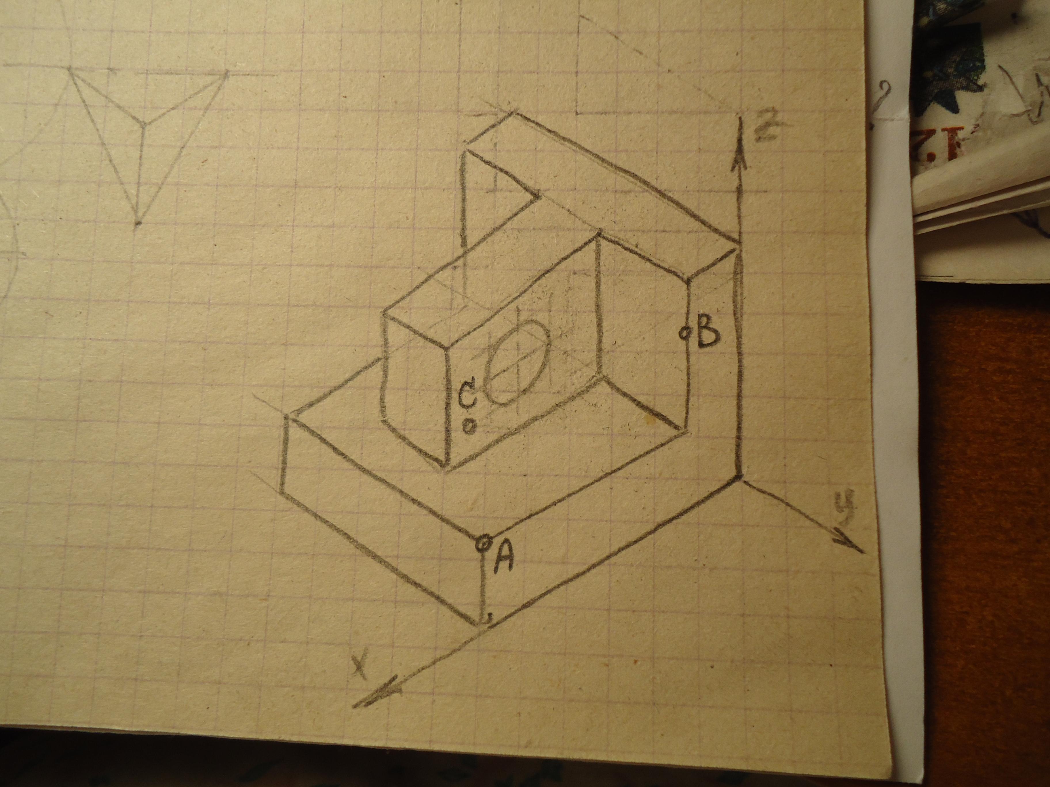Построение чертежа и изометрии детали к рис. 1 и 2 см на фото.