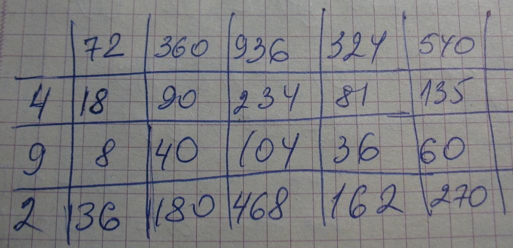 Дальше делим числа первого ряда на числа первого столбца и заполняем ячейки.