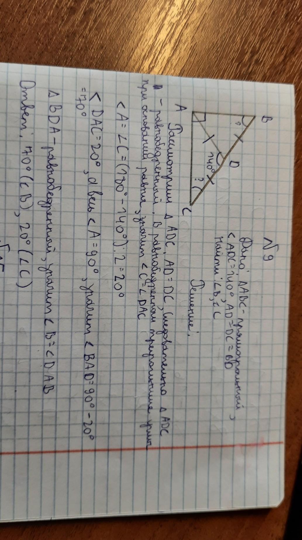Тогда в треугольнике DEK < EKD = 180° - (50° + 70° ) = 60°