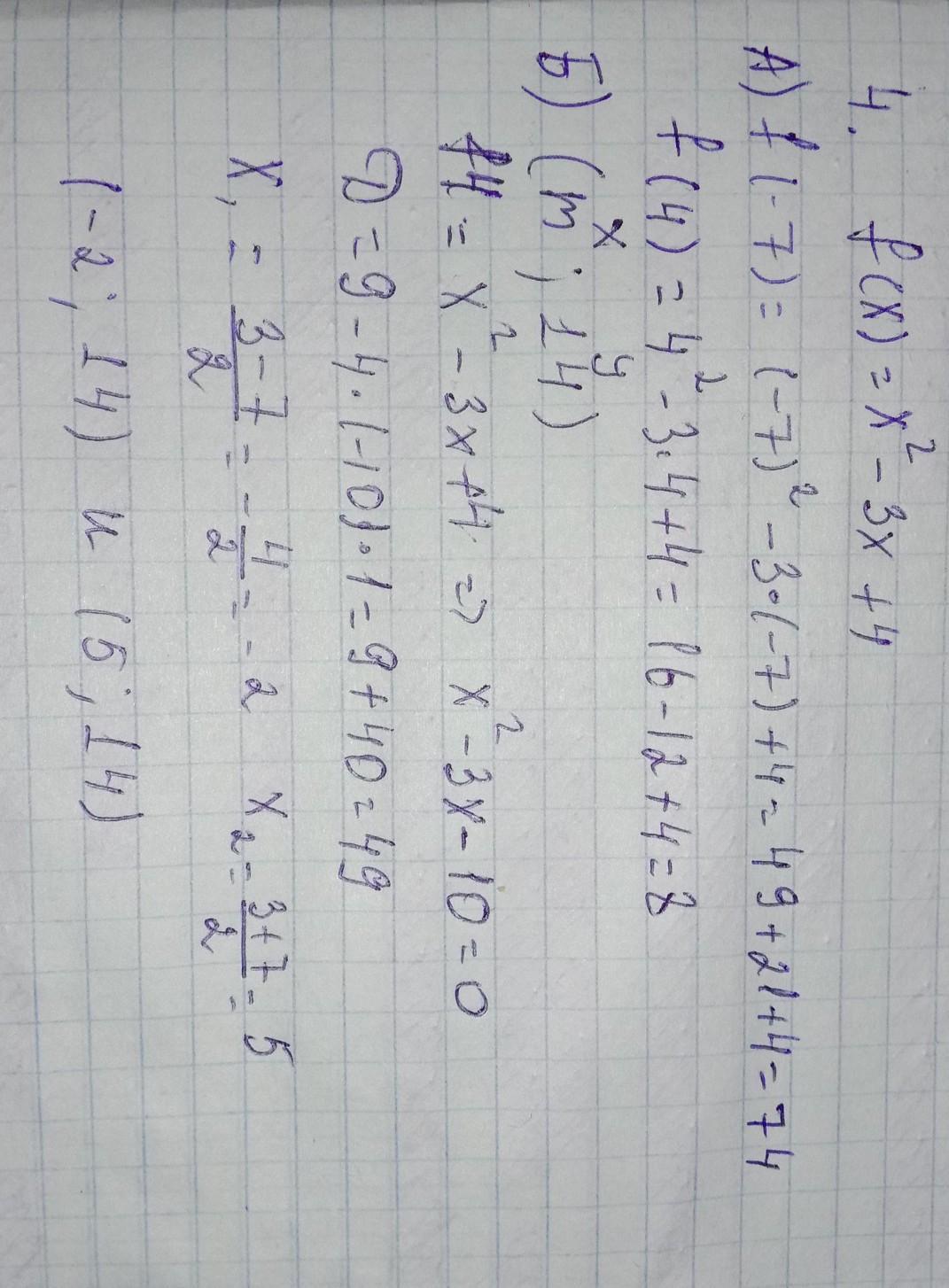 4. Дана функция f (x) = x2 -3x + 4.