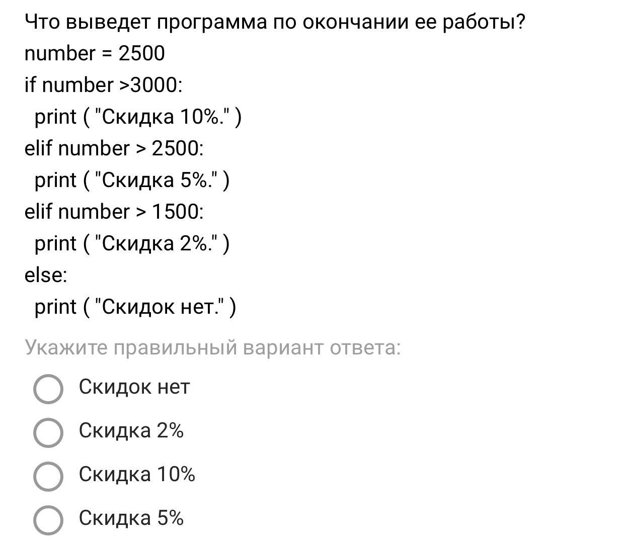 2500 не больше чем 2500, поэтому не выведется "Скидка 5%"