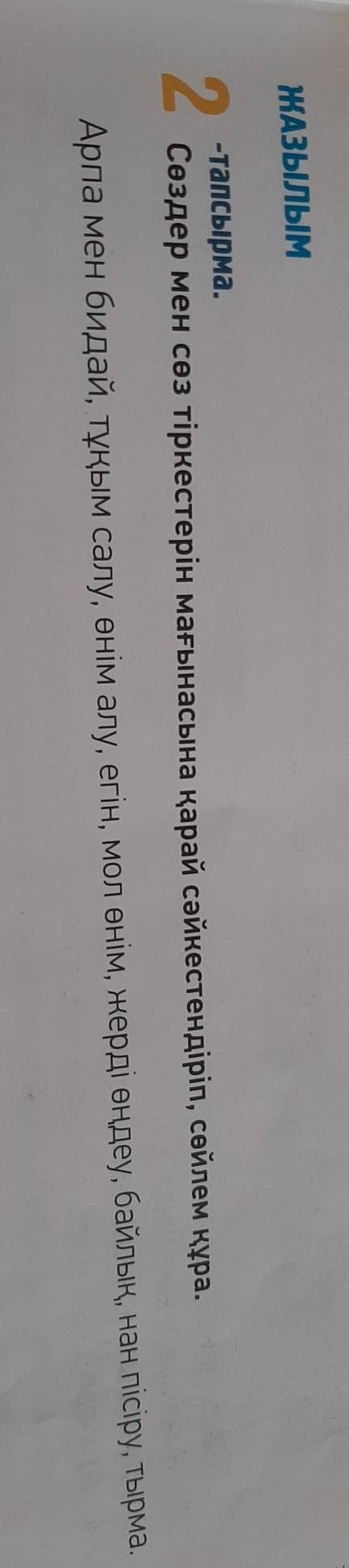 сөздер мен сөз тіркестерін мағынасына қарай сәйкестендіріп,сөйлем құра.