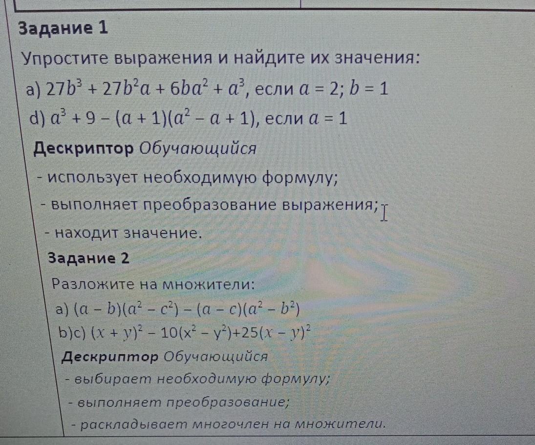а) 27b° + 27b-a + 6bа' + a*, если а = 2; b = 1