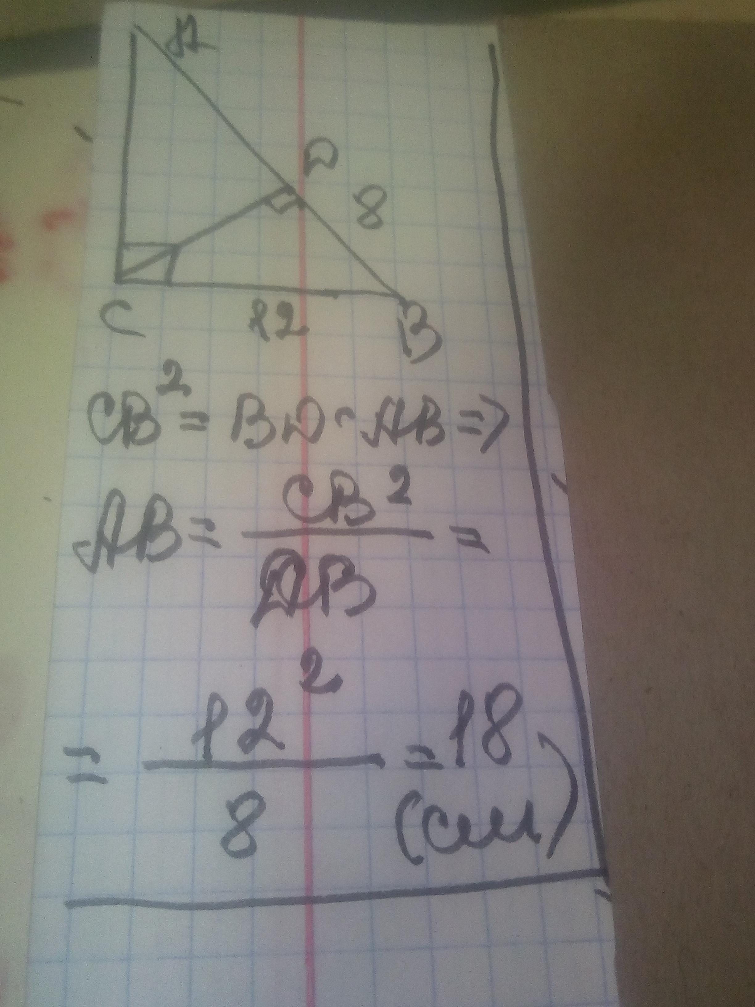 катет прямокутного трикутника дорівнює 12 см а його проекція на гіпотинузу 8 см. Знайти гіпотинузу