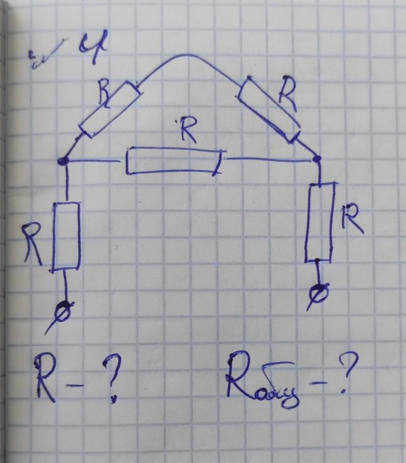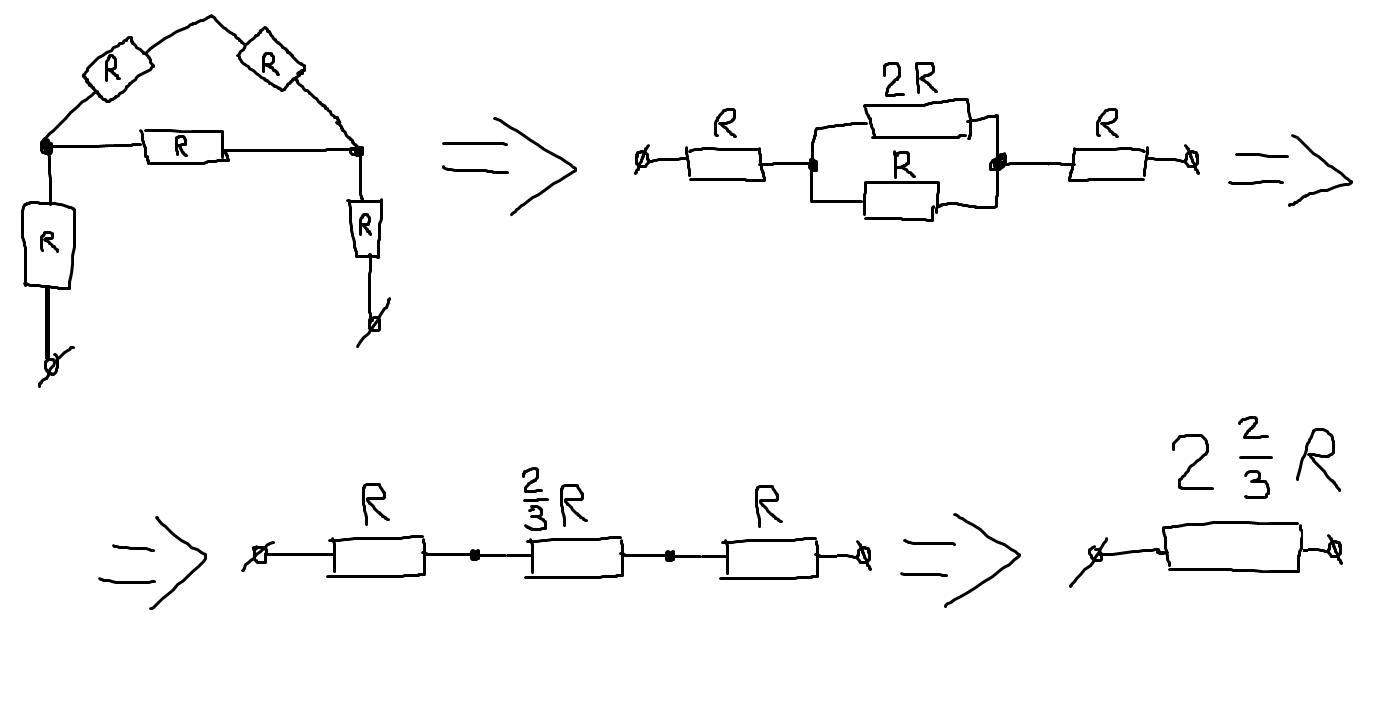 Посчитаем общее сопротивление трех резисторов посередине: