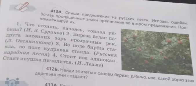 412Б. Найди эпитеты к словам береза, рябина, ива. Какой образ этих