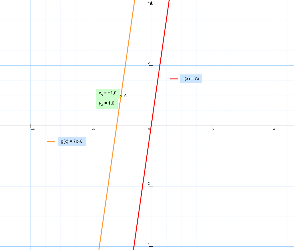 Найдем уравнение прямой проходящей через точку (-1;1) параллельно прямой y=7x