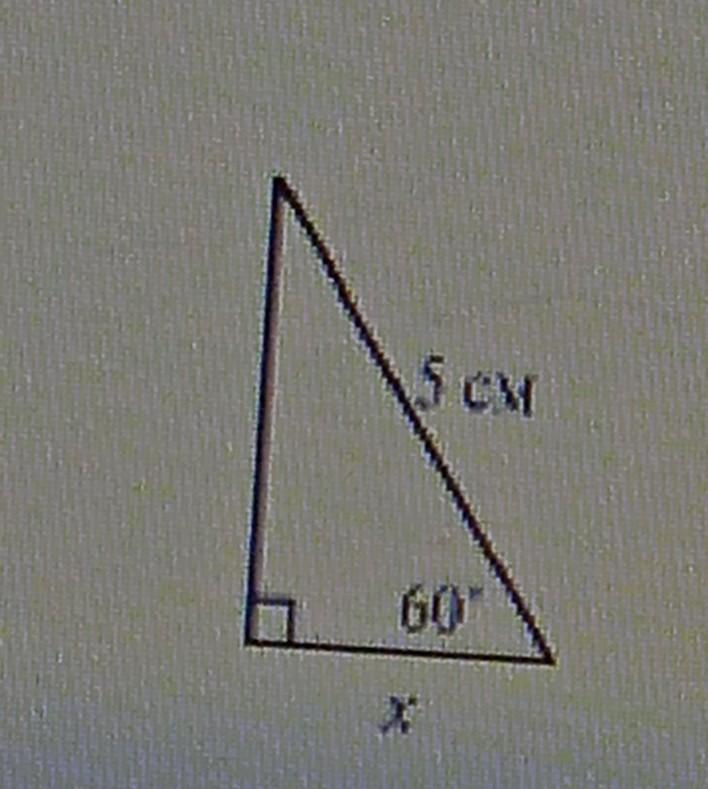 В прямоугольном треугольнике напротив угла в 30 всегда лежит катет, в 2 раза меньший гипотенузы, т.е. сторона х = 5:2= 2,5