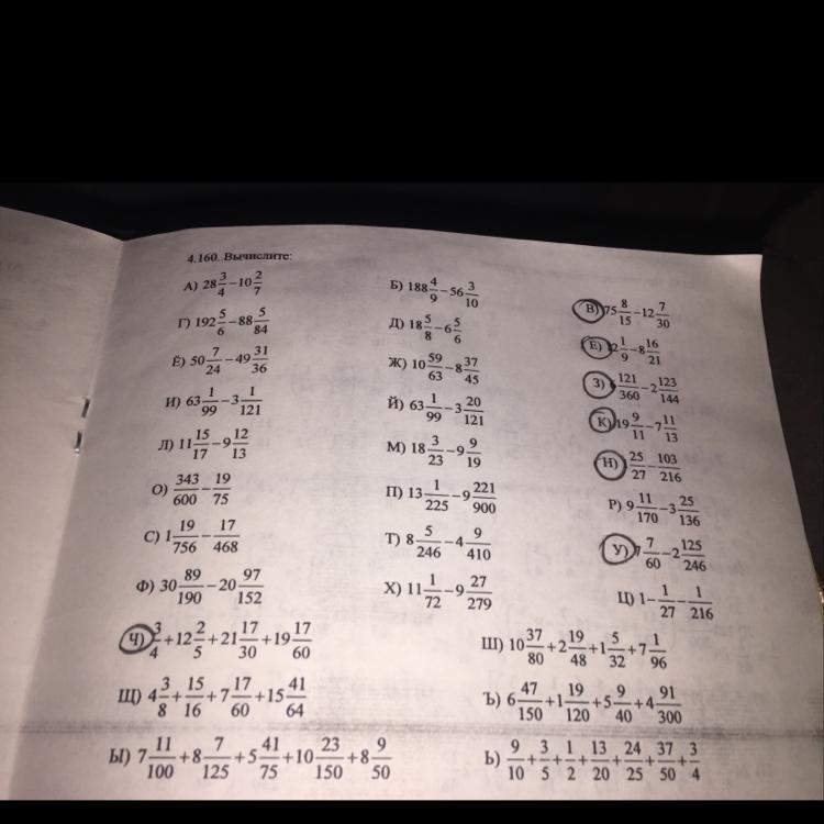 Ч). 3/4 + 12 2/5 + 21 17/30 + 19 17/60 = 3/4 + 62/5 + 647/30 + 1157/60 = 54