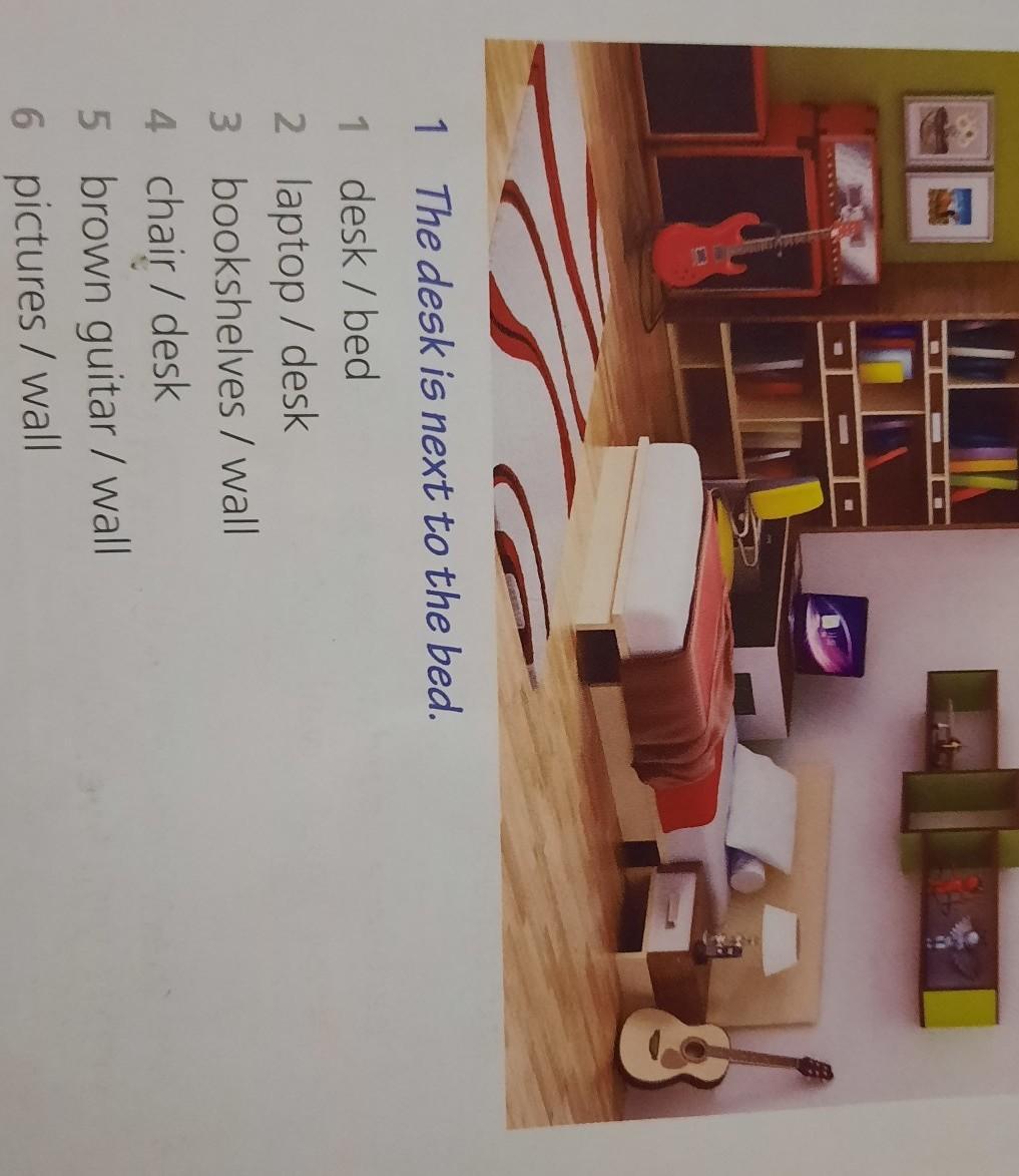 Рядом с моей кроватью стоит коричневая гитара , на которой я люблю играть .