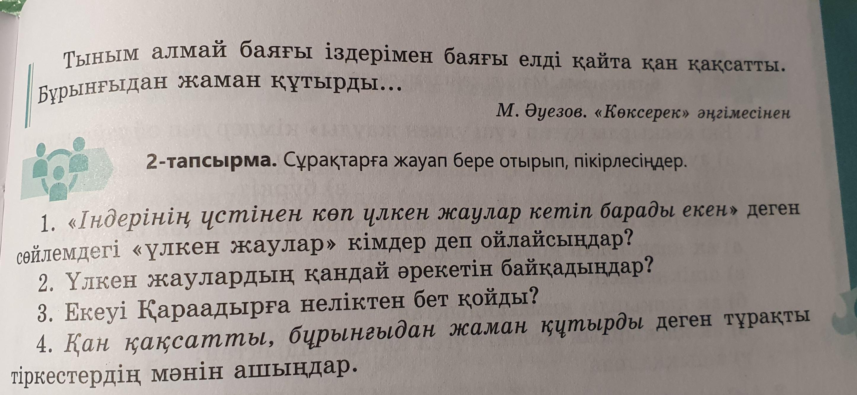 1. «індерінің устінен көп улкен жаулар кетіп барады екен» деген сөйлемдегі «үлкен жаулар» кімдер деп ойлайсыңдар?