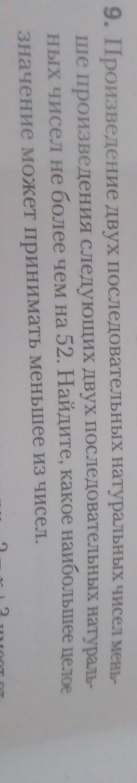 Произведение двух последовательных натуральных чисел меньше произведения следующих двух последовательных натуральных чисел не более чем на 52. Найдите, какое наибольшее целое