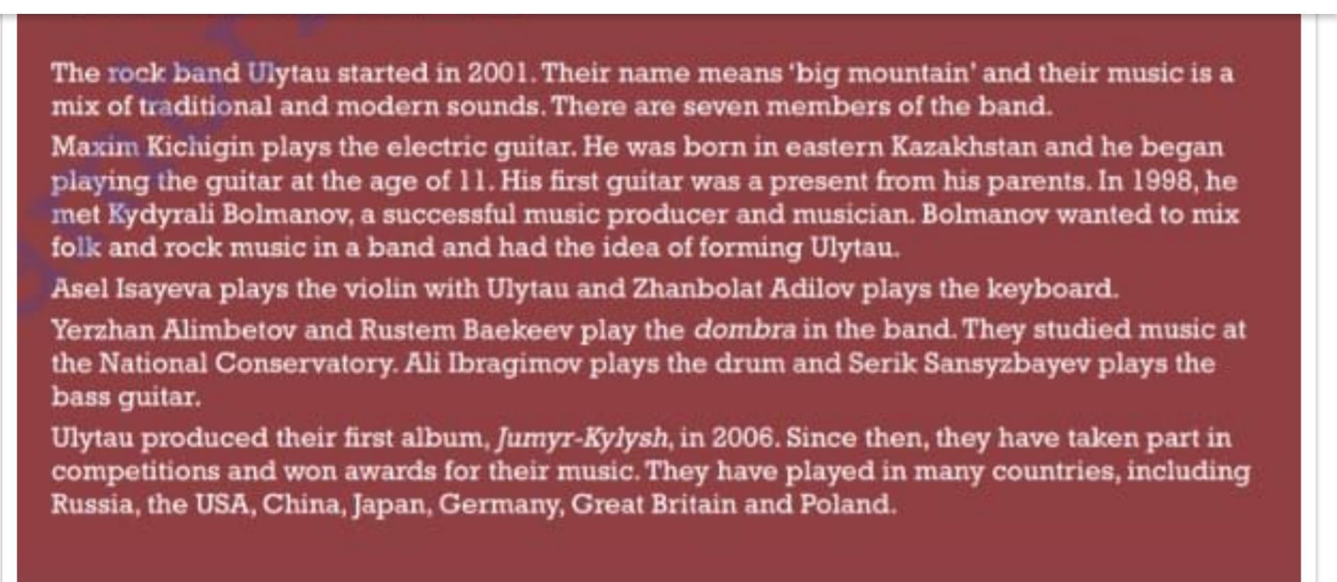 3. False (It was Kydyrali's idea to form the band Ulytau)