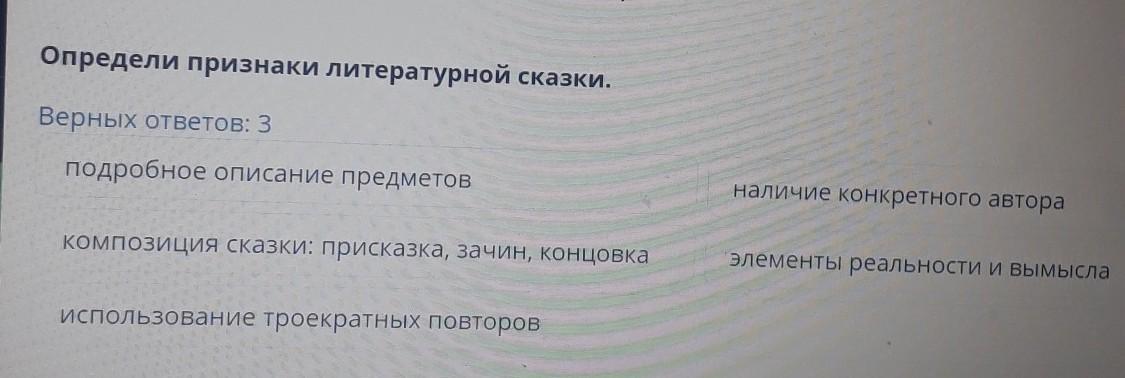 Определи признаки литературной сказки.