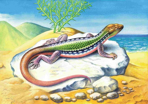 Она греется на солнце, но вместе с этим она всё время настороже - вдруг кто-то станет ловить её!