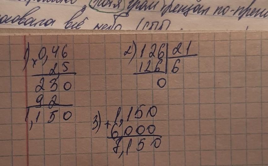 1)0,46*2,5+12,6:2,1=
