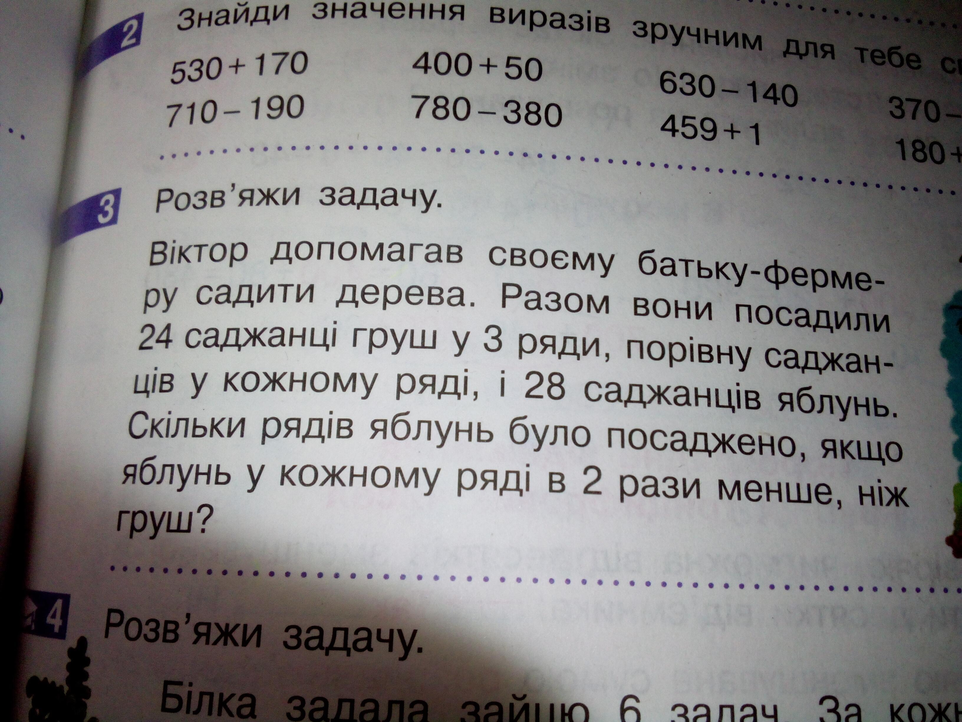 2) 28 : 4 = 7 (р.) - рядов яблок