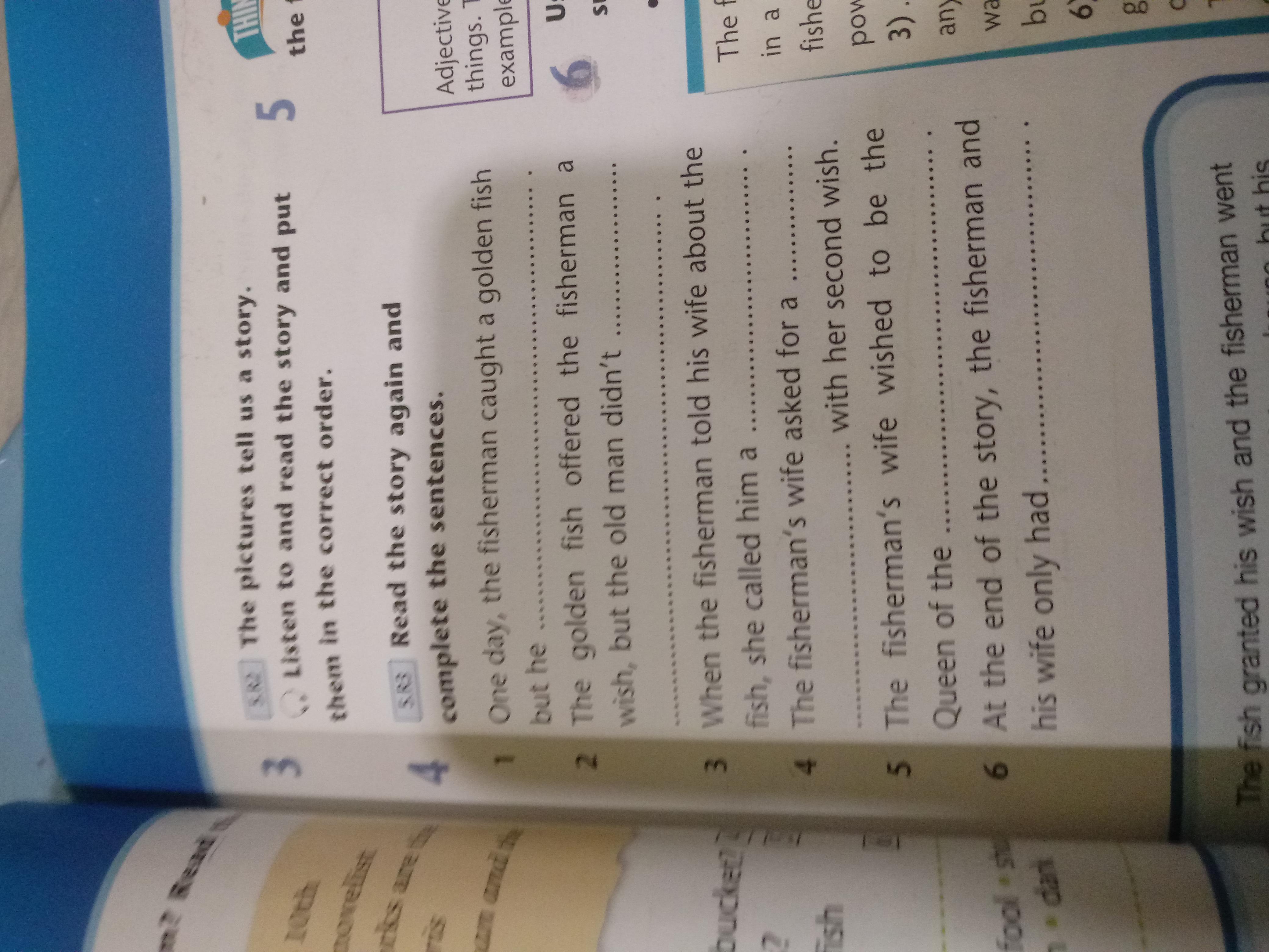 1 let it go 2 want anything 3 fool 4 new house 5 land and sea 6 a small house and the old bucket