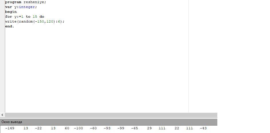Напишите код на Паскале для вывода на экран 15 случайных чисел в диапазоне от –150 до 120.