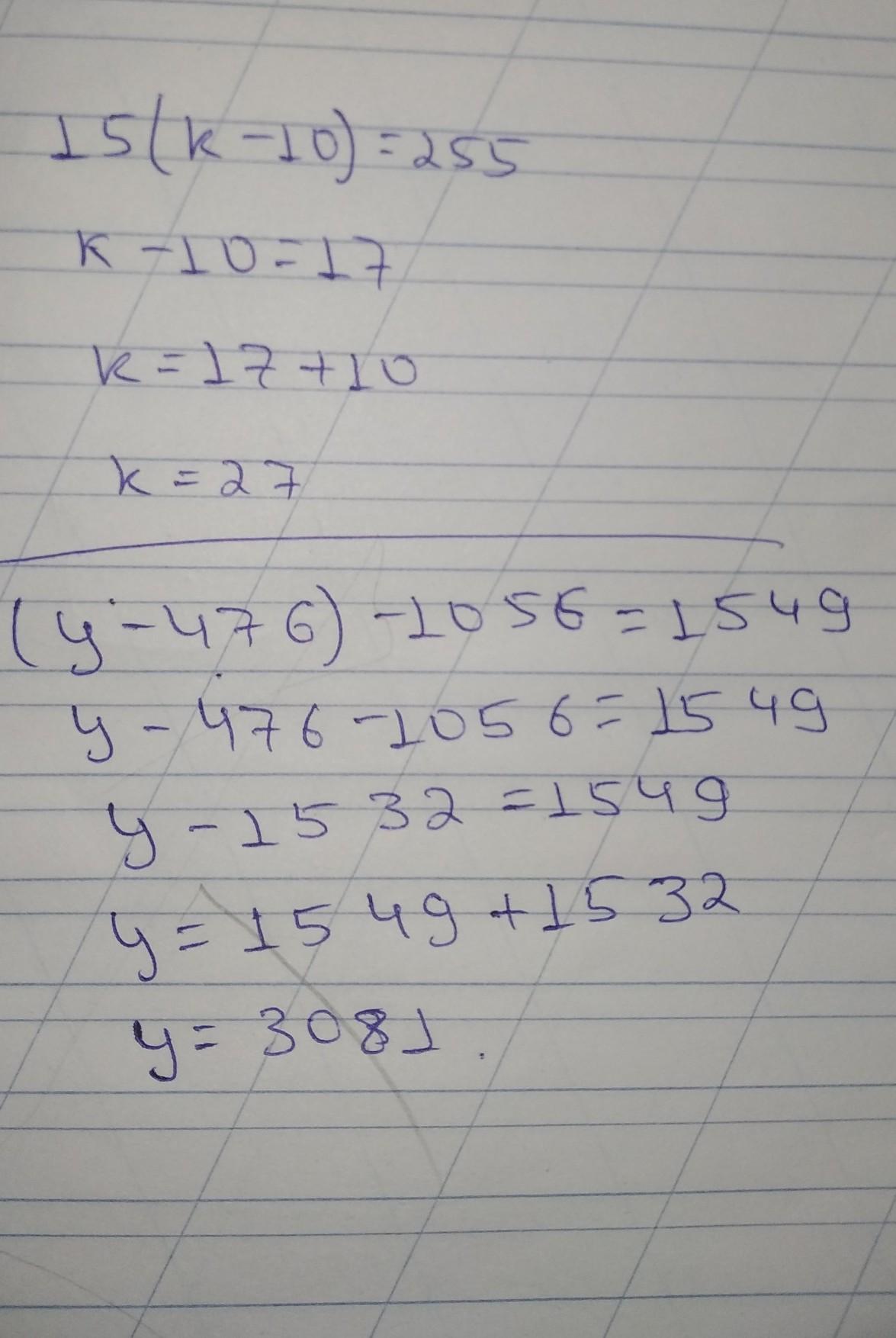 k-10=255:15