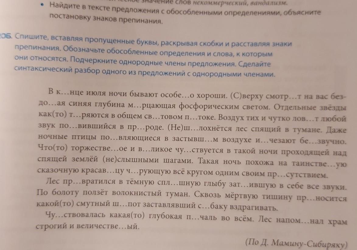 Примечание. Однородные члены подчёркнуты в тексте. Слова, к которым относятся определения, выделены в тексте упражнения жирным шрифтом.