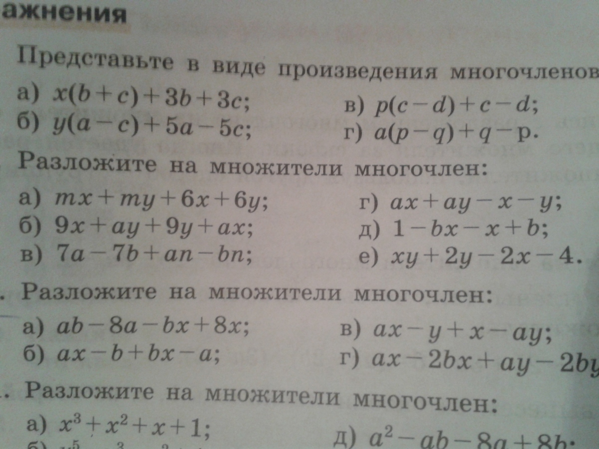 в)=7(a-b)+n(a-b)=(7+n)(a-b) и т.д