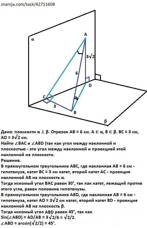 В нашем случае плоскости α ⊥ β. Отрезок АВ = 6 см.