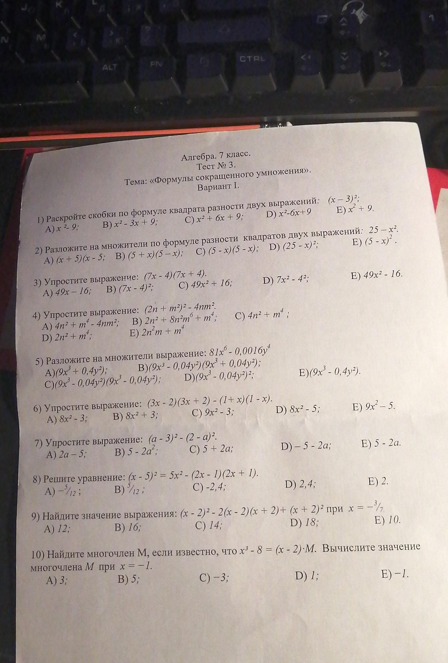 1 ответ ответ д второе ответ в третье ответ е, четвёртое задание ответ а а, пятое задание ответ в шестой задание ответ D, седьмое задание ответ C восьмое задание ответ