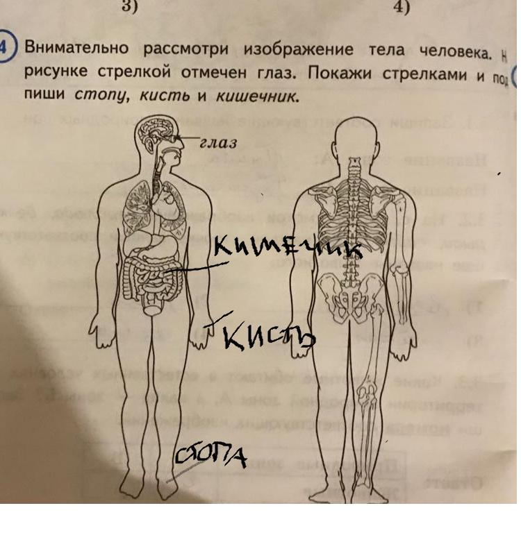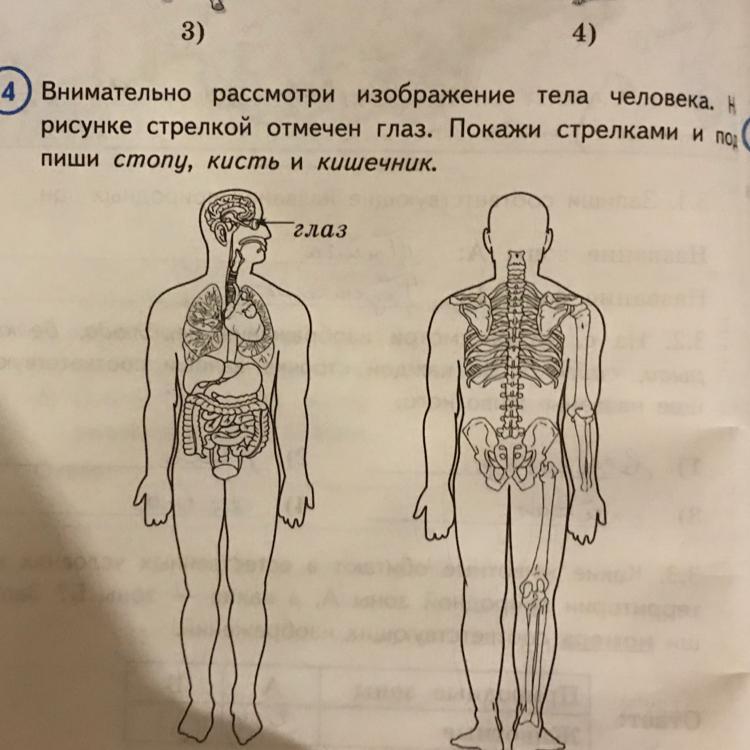 рисунке стрелкой отмечен глаз. Покажи стрелками и под