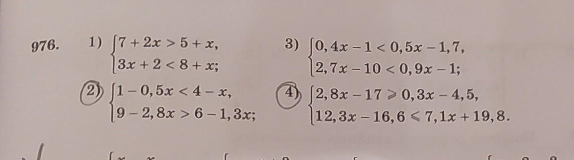 Сами системы писать не буду, только решение. Это системы неравенств. Чтобы решить систему, нужно сначала решить первое неравенство, а потом второе.