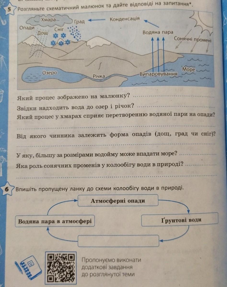 5.6)Солнце нагревает воду в океанах и морях, и она испаряется, преобразуясь в водяной пар. так же и в реках с озёрами но в океанах из-за испарения образуются облака