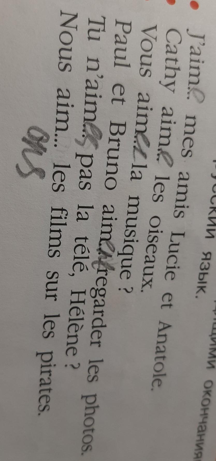 Я люблю. мои друзья Люси и Анатоль. Кэти любит птиц. Вы любите музыку? Пол и Бруно любят смотреть на фотографии. Разве тебе не нравится телевизор, Элен? Мы любим ... пиратские фильмы