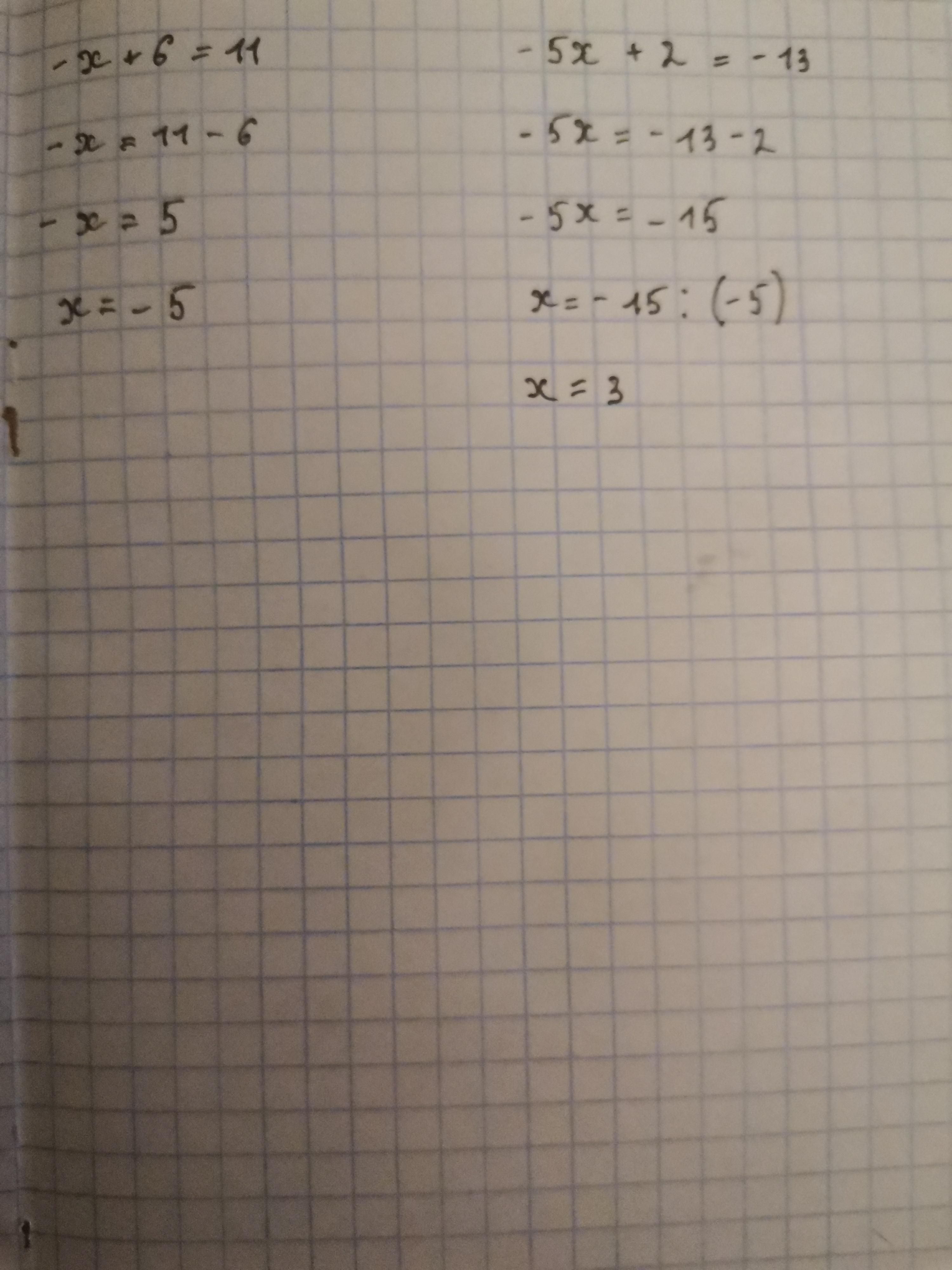 -x+6=11 -5x+2=-13 ДАЮ 30 БАЛЛОВ ПОМОГИТЕ НЕНАДО ТОКО ОТВЕТ А НАДО ЕЩЁ И КАК РЕШАТЬ ПЖ ПОМОГИТЕ УТЕЛЬ ПРОВЕРЯЕТ