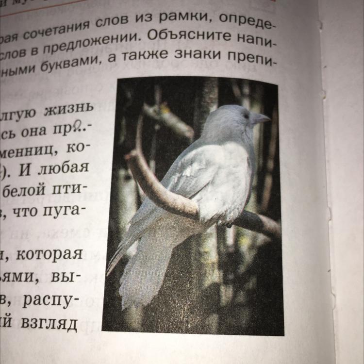 Здесь я вижу птицу. скорее всего это голубь. Он серо-белый. Он сидит на ветке дерева