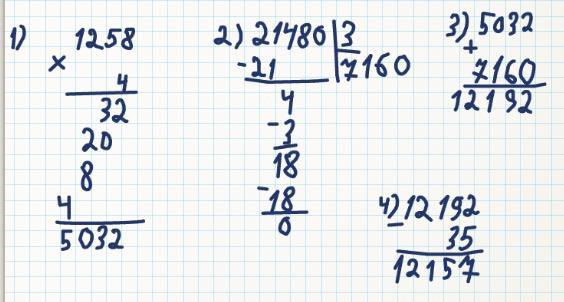 1258 * 4 + 21480 : 3 - 35 = 12157
