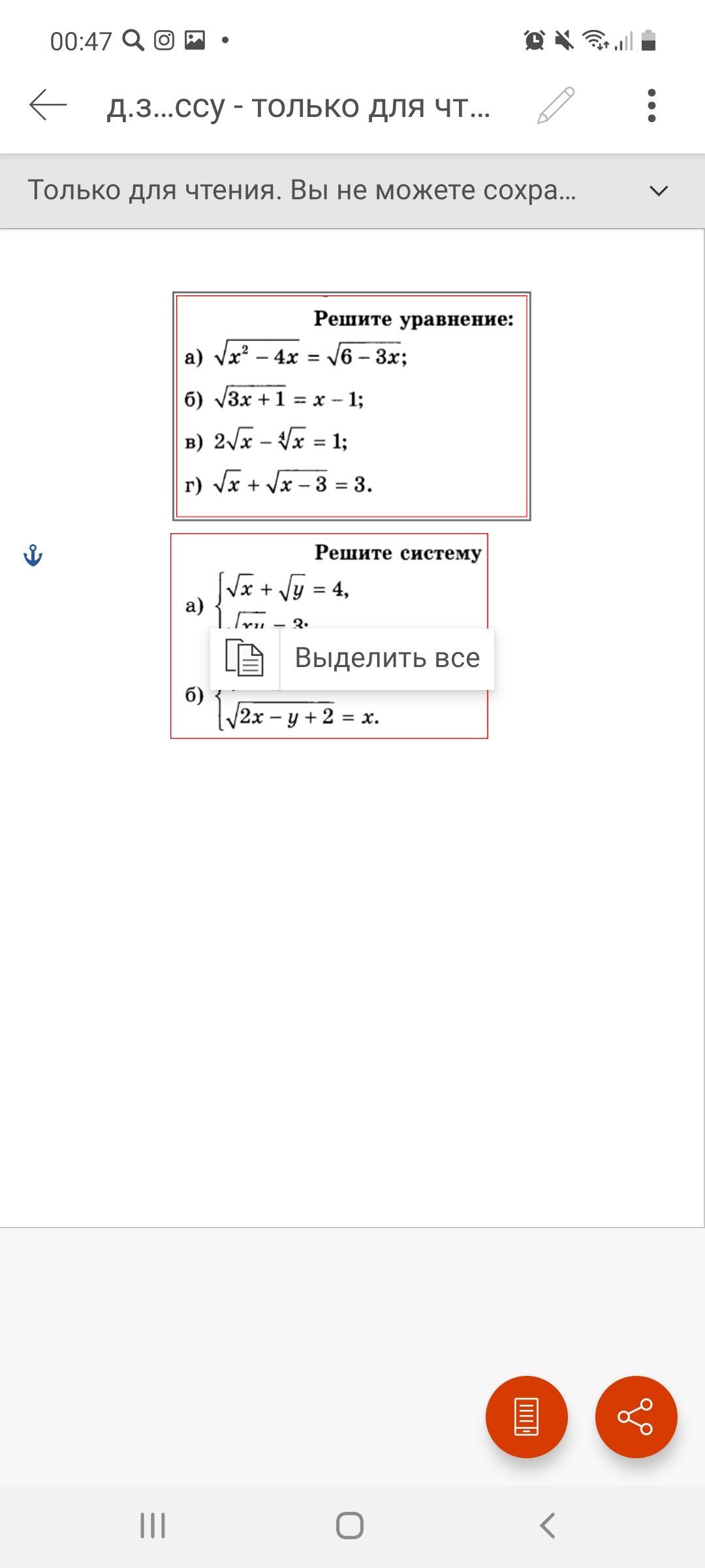 г)возводим обе части в квадрат, умножаем и слагаем все что только возможно, дальше с двух сторон делим на 2, опять возводим обе части в квадрат, сокращаем x в квадрате, а дальше просто находим x.
