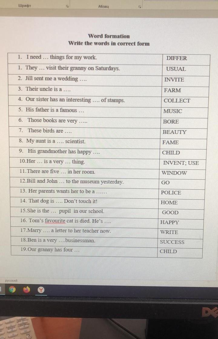 Помогите пжжжж с Английским , нужно написать слова в в нужной форме по правилу словообразования