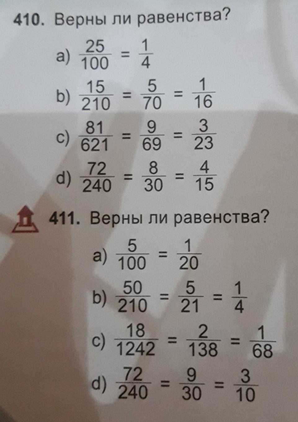 Проверьте верны ли равенства ? Номер 410 там нужно только решить b),c),d).
