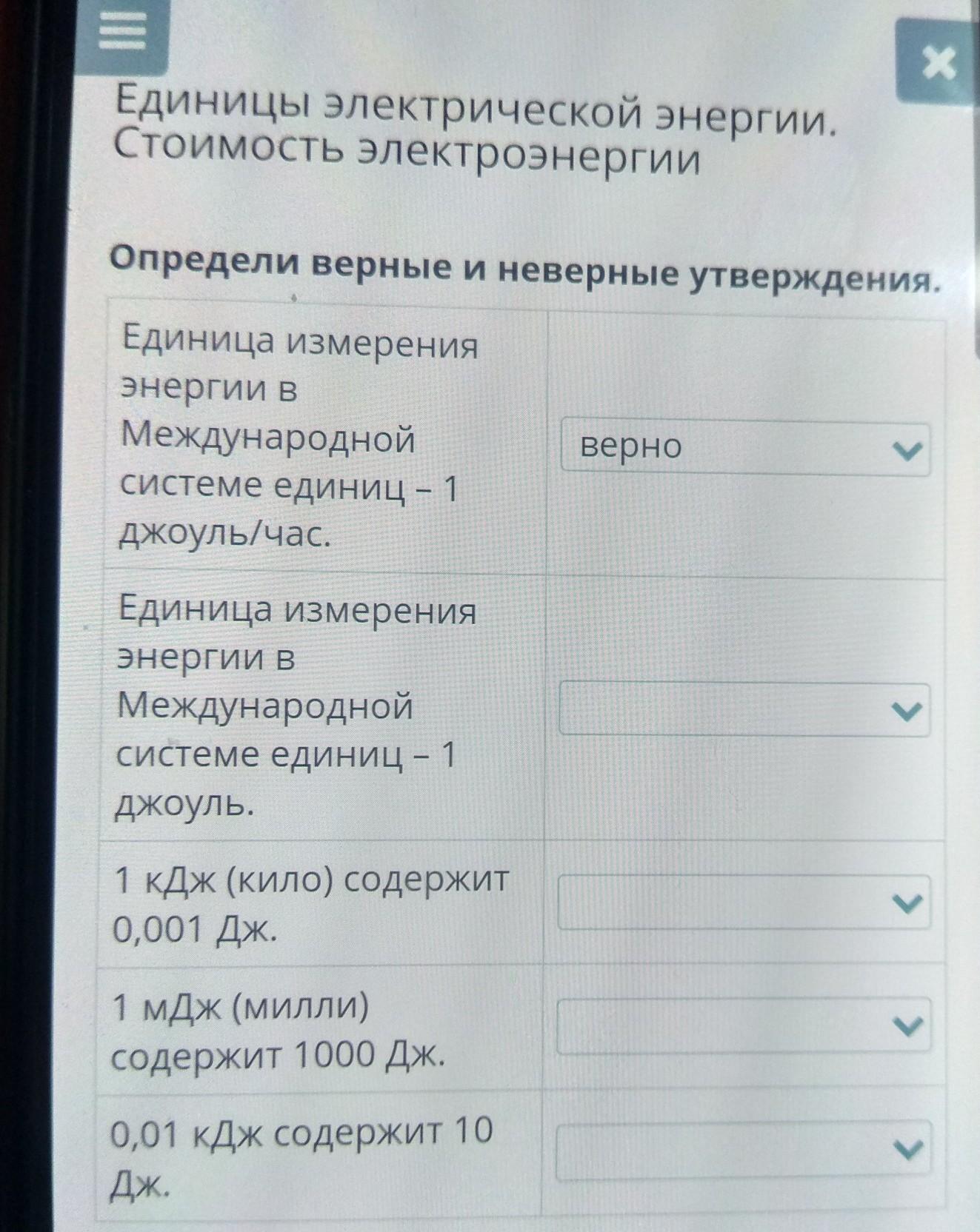 Единица измерения энергии в Международной системе единиц – 1 джоуль/час. неверно